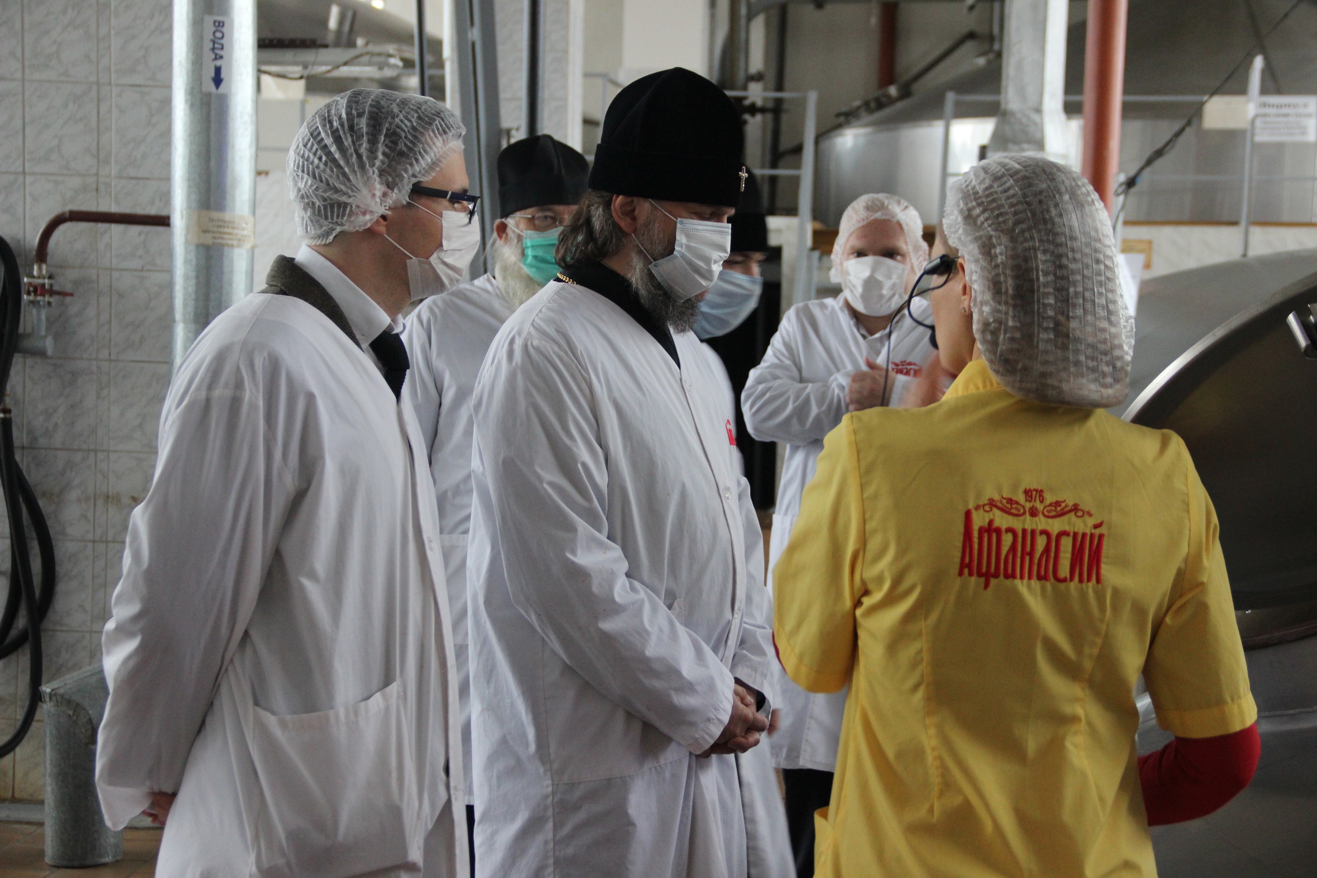 В первой части визита для гостей провели экскурсию по цехам предприятия – митрополит Амвросий, руководитель службы протокола Тверской епархии иерей Сергий Будков, настоятель тверского собора «Неупиваемая Чаша» иерей Александр Горячев, представители холдинга Вадим Дешевкин и Елена Гончарова посетили музей «Афанасия», помещения, где варится и разливается квас и очищается вода. Также делегация посетила «солодовые поля» (где подготавливается сырьё для производства напитков холдинга) и сыроварню, где делают авторские «крафтовые» сыры. Экскурсовод Ксения Антипова познакомила гостей с процессом изготовления продуктов, историей предприятия и тем, как «Афанасий» открывает для себя всё новые и новые этапы производства фермерских и полезных продуктов питания.